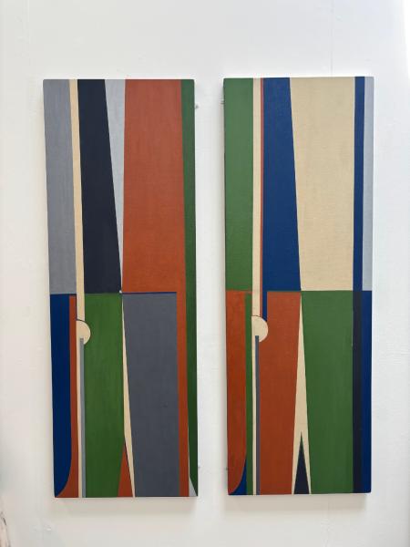 | Beth Woodland- Delamore Arts Prize Winner 2025Playing with discovering shape and form whilst creating is something I'm incredibly passionate and excited about. My most recent work is an invitation for the viewer to explore the canvas, to encounter composition and how colours meet and move with each other.